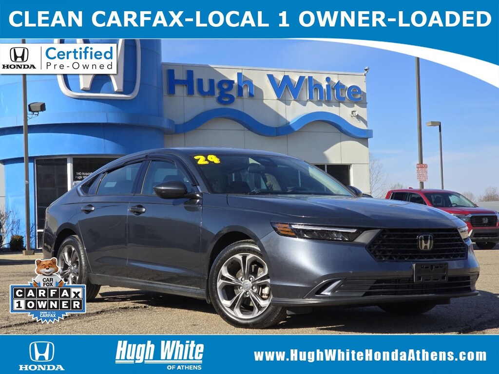 DESIRABLE FEATURES: * CARFAX 1-OWNER *, * LOCAL 1-OWNER *, * LOCAL-TRADE-IN *, APPLE CARPLAY, CLEAN CARFAX, MOONROOF, LANE-DEPARTURE WARNING, TECH PKG, HEATED-SEATS, ANDROID AUTO, REMOTE START, KEYLESS-START, TURBO, BLUETOOTH, BACKUP CAMERA, BLIND-SPOT MONITORING, MULTI-ZONE AC, WiFi Hotspot, Remote entry. Your 2024 Honda Accord Sedan EX is perfect for daily work or weekend road trips to our neighboring communities of Athens.