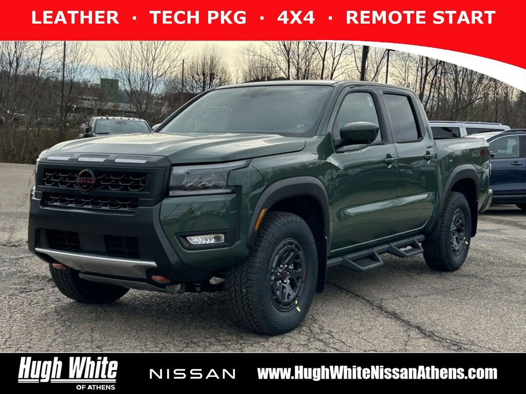 DESIRABLE FEATURES: LEATHER, LANE-DEPARTURE WARNING, TECH PKG, 4X4, REMOTE START, HEATED-SEATS, KEYLESS-START, HEATED-STEERING WHEEL, BLUETOOTH, BACKUP CAMERA, BLIND-SPOT MONITORING, FOG LAMPS, MULTI-ZONE AC, ALLOY-WHEELS, WiFi Hotspot, Remote entry, SiriusXM. Your new 2026 Nissan Frontier PRO-4X is one of 7 other models like this in stock Athens drivers will find available to test drive at our new vehicle showroom in Athens, OH. This Nissan Frontier is perfect for any ones car needs in our neighboring communities of Athens, OH.