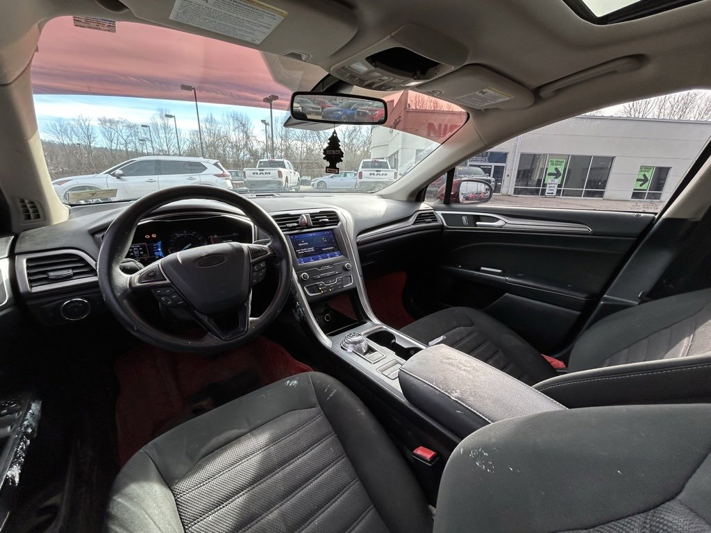 SAFETY OPTIONS: Cross Traffic Alerts, Rain Sensing Wipers, Back-Up Camera, Lane Keeping Assist System, Rear Parking Aid, Electronic Stability Control, Brake Assist, Restricted driving mode, Daytime Running Lights, Security System, Emergency SOS system, Front Collision Mitigation, Driver Alert System, Knee AirBag, Tire Pressure Monitoring System, Rear Air Bag, Auto Highbeams, ABS Brakes, Overhead airbag, Drivers Air Bag, Dual Air Bags, Speed Sensitive Power Steering, Delay-off headlights, Front Head Air Bag, Driver Front Side Impact Air Bag, Child Proof Locks, Passenger Air Bag Sensor, Passenger Front Side Impact Airbag. This 2020 Ford Fusion SE comes standard with peace of mind for any driving conditions