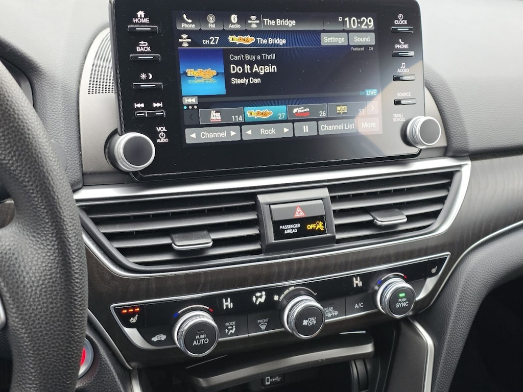 SAFETY OPTIONS: Electronic Stability Control, Back-Up Camera, Cross Traffic Alerts, Lane Keeping Assist System, Daytime Running Lights, Brake Assist, LED Headlights, Cruise Control Steering Assist, Security System, Adaptive Cruise Control, Front Collision Mitigation, Rear Air Bag, Driver Alert System, Drivers Air Bag, Tire Pressure Monitoring System, ABS Brakes, Knee AirBag, Driver Front Side Impact Air Bag, Front Head Air Bag, Passenger Air Bag Sensor, Child Proof Locks. This 2019 Honda Accord Sedan EX 1.5T comes standard with peace of mind for any driving conditions