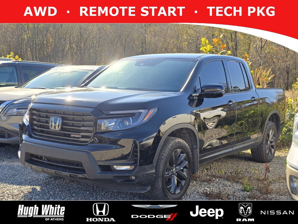 Free CARFAX report!  DESIRABLE FEATURES:   AWD, REMOTE START, TECH PKG, LANE-DEPARTURE WARNING, KEYLESS-START, BLUETOOTH, BACKUP CAMERA, MULTI-ZONE AC, FOG LAMPS, Remote entry.  Your 2023 Honda Ridgeline Sport is perfect for daily work or weekend road trips to our neighboring communities of Athens.