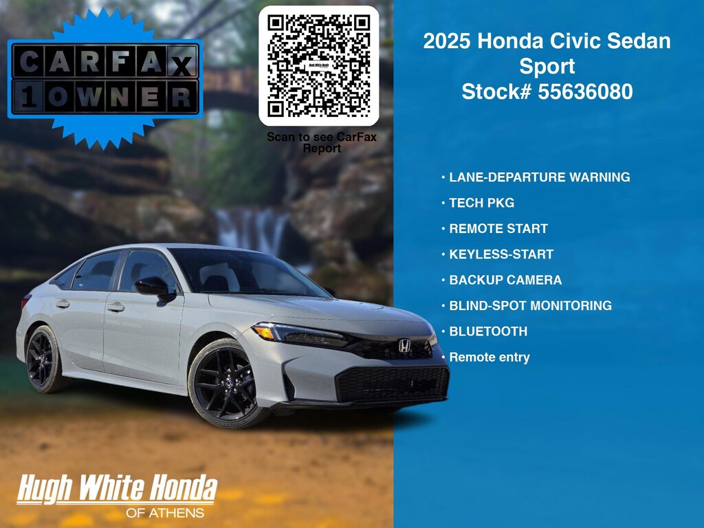 DESIRABLE FEATURES: REMOTE START, LANE-DEPARTURE WARNING, TECH PKG, KEYLESS-START, BLIND-SPOT MONITORING, BACKUP CAMERA, BLUETOOTH, Remote entry. Your 2025 Honda Civic Sedan Sport is perfect for daily work or weekend road trips to our neighboring communities of Athens.