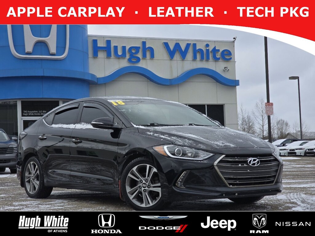 DESIRABLE FEATURES: LEATHER, APPLE CARPLAY, TECH PKG, ANDROID AUTO, HEATED-SEATS, KEYLESS-START, BLIND-SPOT MONITORING, BLUETOOTH, BACKUP CAMERA, HOMELINK, ALLOY-WHEELS, MULTI-ZONE AC, Remote entry, SiriusXM. Your 2018 Hyundai Elantra Limited is perfect for daily work or weekend road trips to our neighboring communities of Athens.