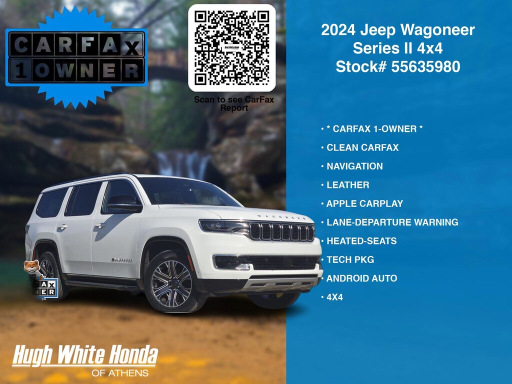 DESIRABLE FEATURES: * CARFAX 1-OWNER *, NAVIGATION, CLEAN CARFAX, APPLE CARPLAY, LEATHER, REMOTE START, 4X4, HEATED-SEATS, ANDROID AUTO, LANE-DEPARTURE WARNING, HEATED-REAR SEATS, TECH PKG, COOLED SEATS, 3RD ROW SEAT, TURBO, HEATED-STEERING WHEEL, KEYLESS-START, ALPINE AUDIO, PREMIUM AUDIO, POWER LIFT-GATE, BACKUP CAMERA, RUNNING BOARDS, HANDS-FREE LIFTGATE, BLIND-SPOT MONITORING, BLUETOOTH, BACKUP-SENSORS, FOG LAMPS, MULTI-ZONE AC, WiFi Hotspot, SiriusXM, Remote entry. Your 2024 Jeep Wagoneer Series II 4x4 is perfect for daily work or weekend road trips to our neighboring communities of Athens.