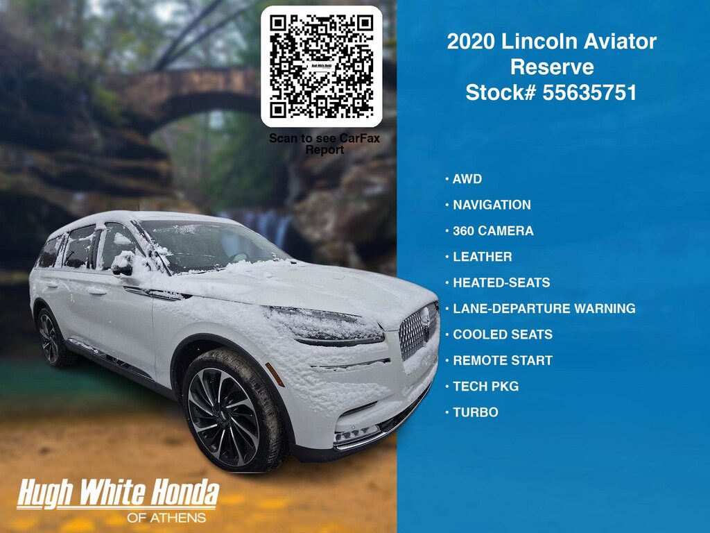 (844) 859-8630 TO SCHEDULE YOUR TEST DRIVE of this 2020 Lincoln Aviator Reserve. You can also visit us at 250 Columbus Road. Athens, OH 45701 to check it out in person! Our Hugh White Athens Used car dealership only sells used cars Athens, OH buyers can trust for safety and worry free driving.